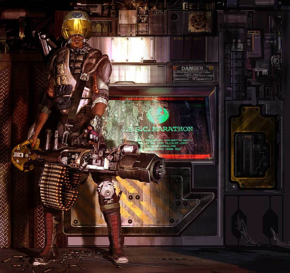《马拉松》(Marathon) 系列讲述的是人类-外星种族的星际战争故事。三部曲包括:《马拉松》(1994)、《马拉松:杜兰德尔》(1995)、《马拉松:无限》(1996).