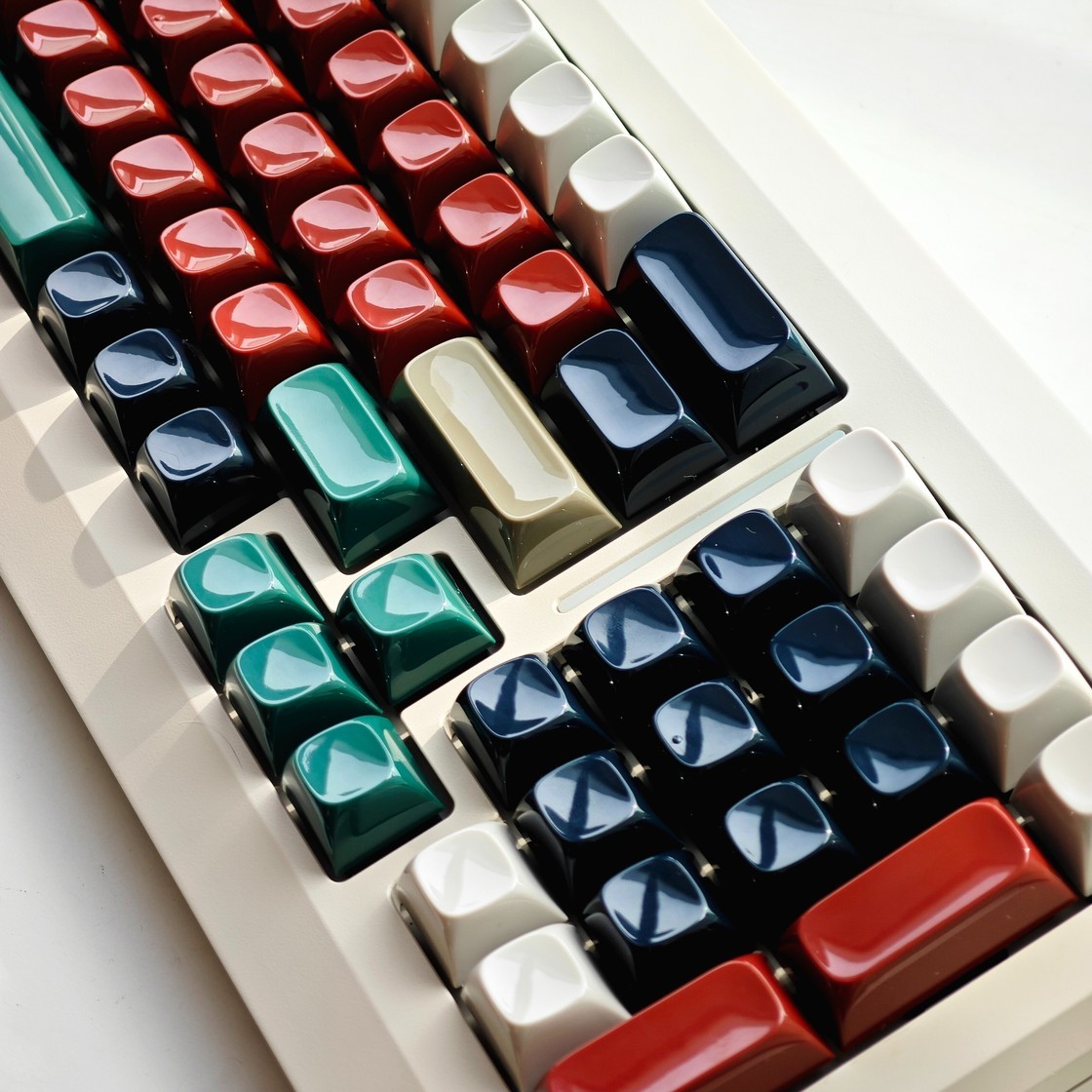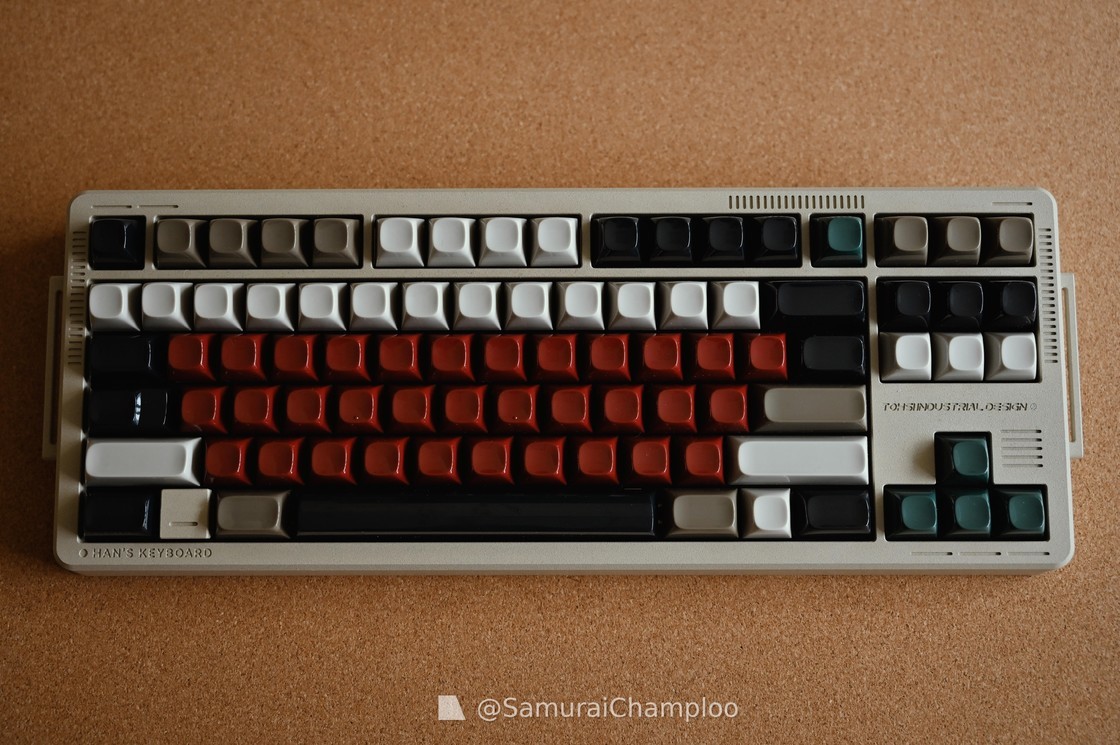 說回鍵帽本身,拋光註定了這款鍵帽與手感無緣,而絲印也是讓這套鍵帽變得更加「只可遠觀不可褻玩焉」,不過這種高球帽+拋光本身就是顏值拉滿的組合,想必購買的用戶也不是衝着使用去的,作爲擺拍鍵帽絕對是一騎絕塵的存在,搭配復古套件更是鍵帽中的小霸王——威力無窮!