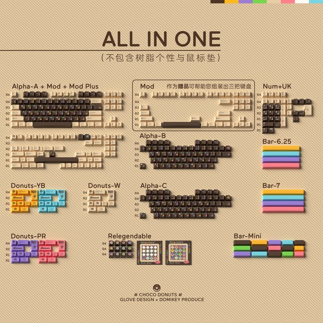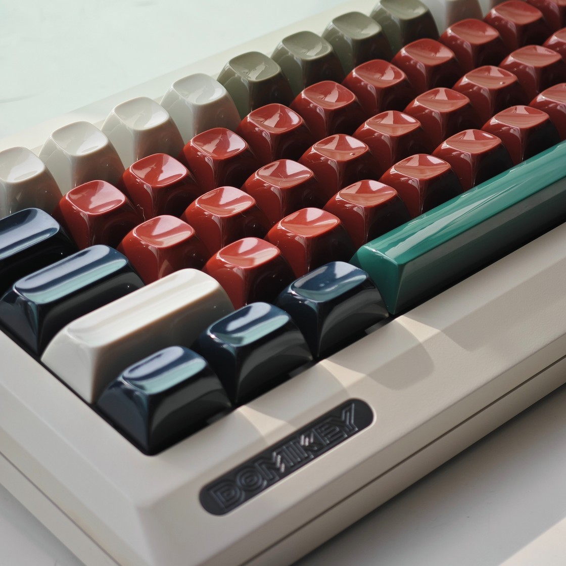 如果說巧克力大亨是依託無限接近巧克力融化的質感來取勝,那這款甜甜圈鍵帽就是憑藉字符多色搭配來打動人心。不過這也必須靠着Domikey強大的生產力和設計師團隊的溝通才能實現。實際上,做這樣一份大雜燴鍵帽就需要生產三份鍵帽進行混搭才能出品,也就是說,moq壓力最少是1200份鍵帽。