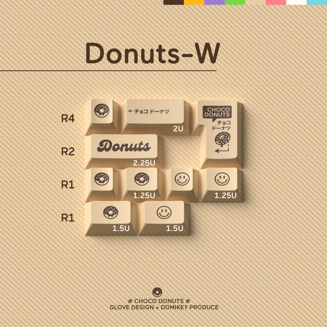 個性部分簡單明瞭,這次鍵帽設計重在配色和字根,日文對應字根和甜甜圈主題「巧克力甜甜圈」。