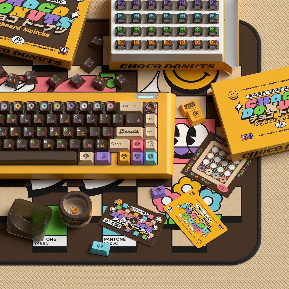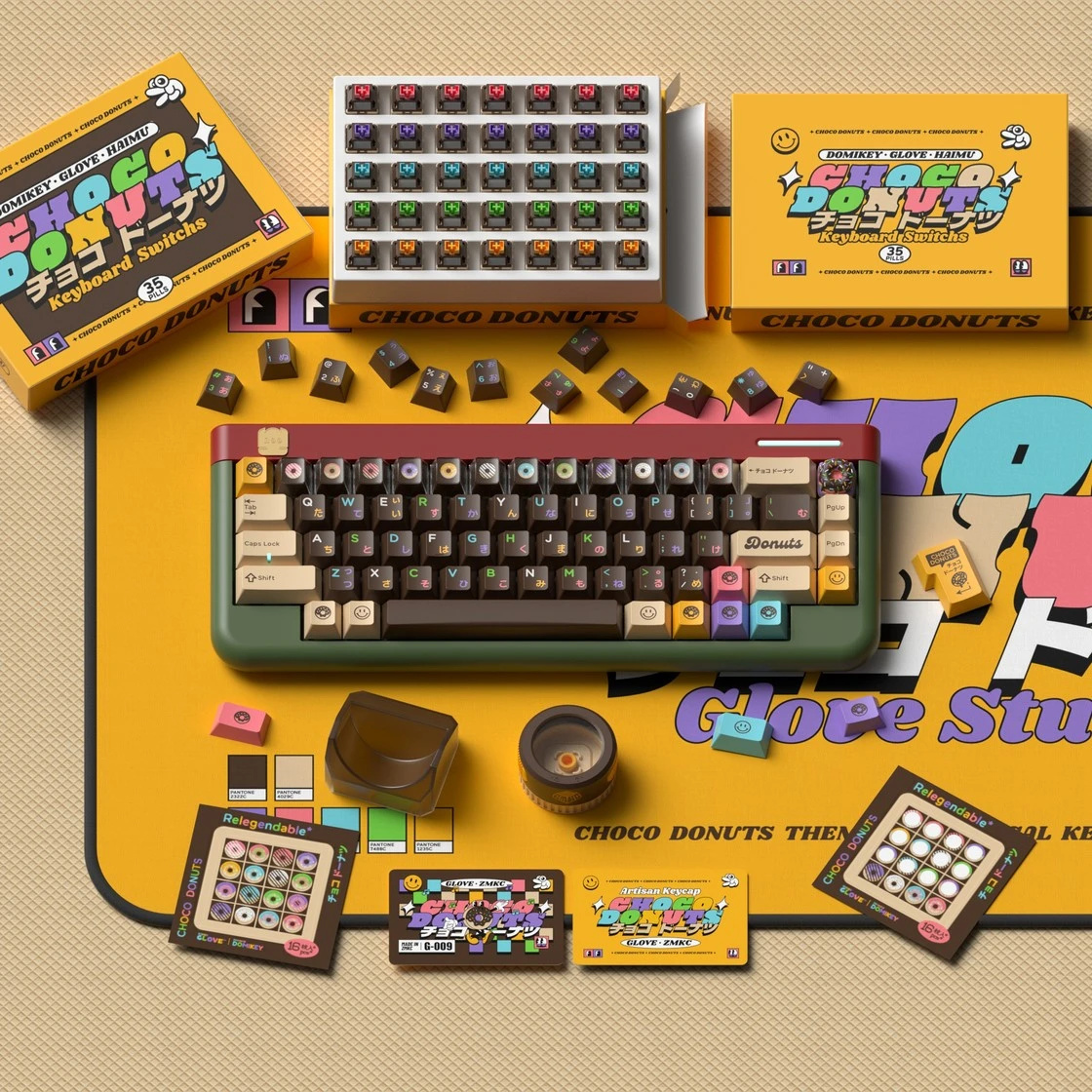 這款鍵帽是由「Glove」工作室的設計師「手套」設計的一款美食主題鍵帽,靈感來源於甜甜圈。手套不用多說,已經是我們專欄的老朋友了,是一位極具實力的設計師,設計了諸如傳火、鱷梨星、繁文生肖等優秀作品。