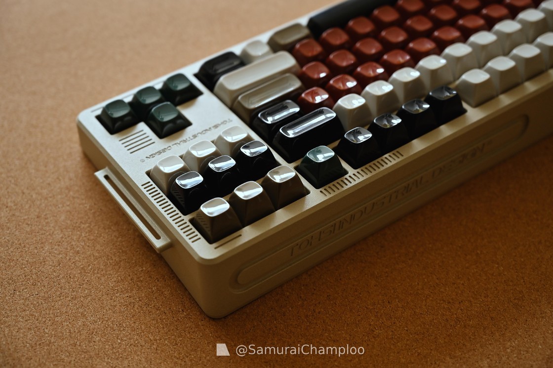 這款鍵盤是由設計師「OK 木頭」創作的,靈感來源於 Sony TPS 隨身聽。設計採用了條塊分割的視覺元素,配合實體按鍵「換帶」功能,功能與美學並重。底部六邊形模塊採用 Poron + 類簧進行支撐,底殼固定六角形的簧,手感更韌性和彈性。此產品提供直列和常規 40 兩種配列。雖然價格不便宜,但產品內外兼修,頗具誠意。