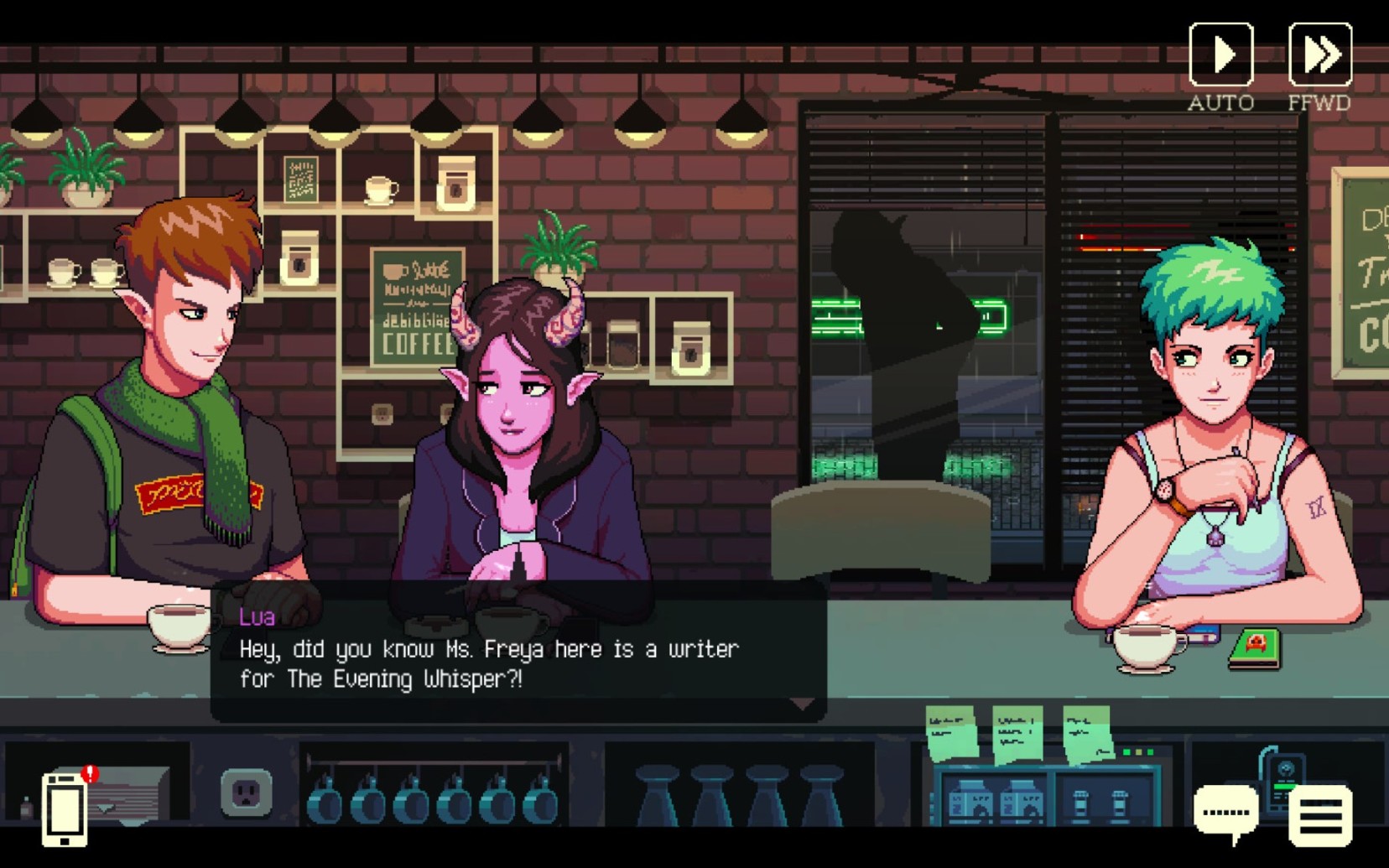 游戏介绍:Coffee Talk是一款关于冲调咖啡与互诉衷肠的模拟游戏。在充满奇幻气息的现代社会中,你要倾听人们的烦恼,并通过精心冲调的暖饮帮顾客渡过难关。