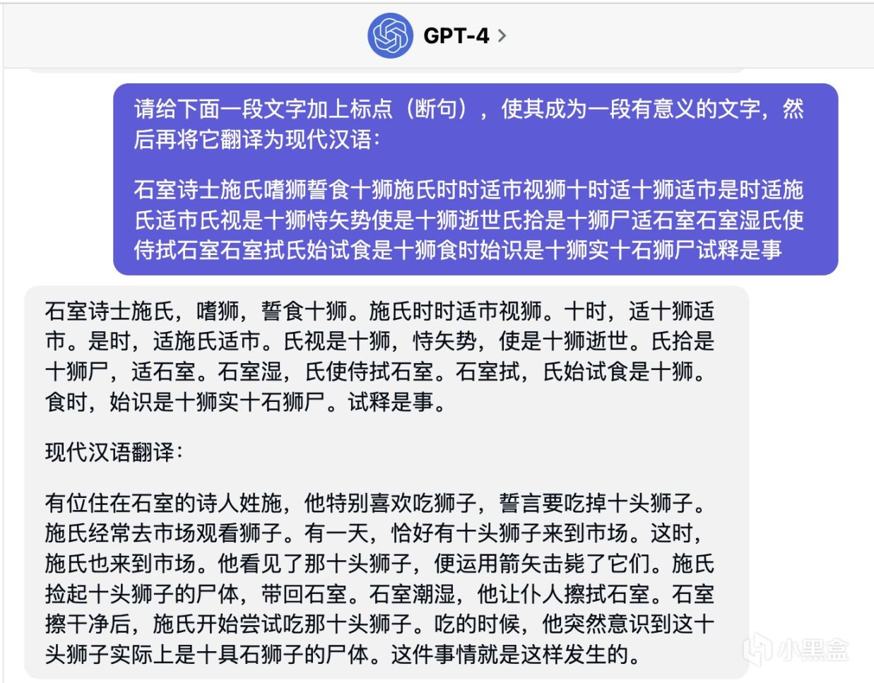 在许多问答环节,GPT-4比GPT-3的回答更贴近人类,语言也更加流畅,“人工智障”、“答非所问”、“凭空捏造”等BUG也大大减少,同时也具备极强的理解能力,比如有网友发现GPT-4可以为文言文断句,并实现文言文-现代汉语的翻译过程!