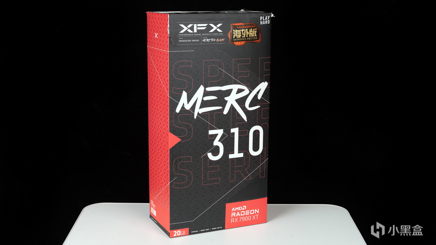 之前已经说了,这次想探寻一下i5-12400F超外频后,是否能够在某些方面和i7-13700K扳手腕,所以显卡自然就选择高端定位的,恰好最近RX 7000系列也降价了,选择的是来自讯景XFX的RX 7900 XT海外版Pro,包装采用比较特别的竖形设计,表面是MERC 310字样,致敬的是梅赛德斯奔驰。
