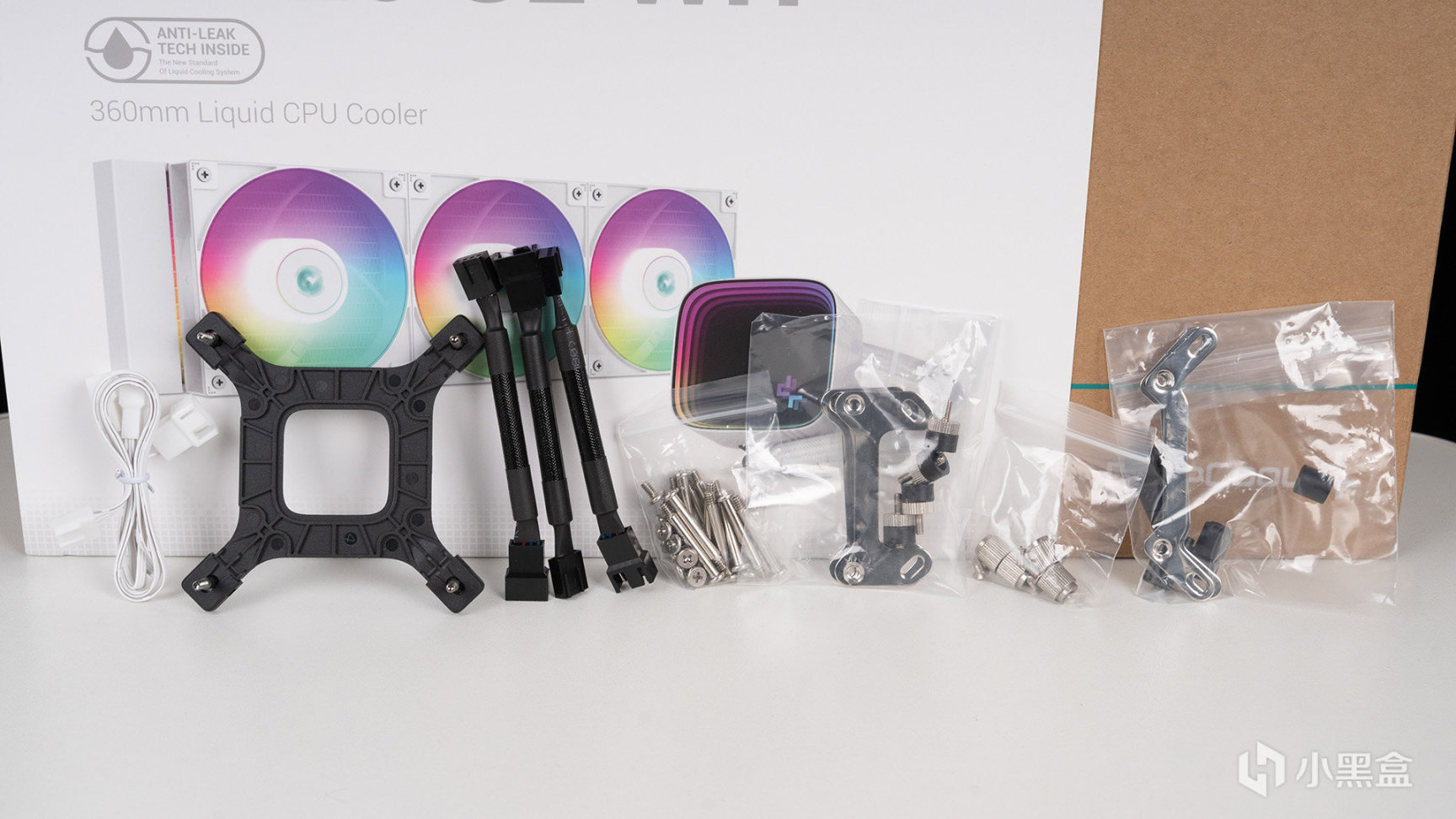 配件一览,各种平台扣具齐全,设计没有硬伤之处,对于这种价位的产品来说个人已经是满足,而这款水冷还贴心配备了三根降速线,要是觉得满载时风扇噪声大的时候可以接上。