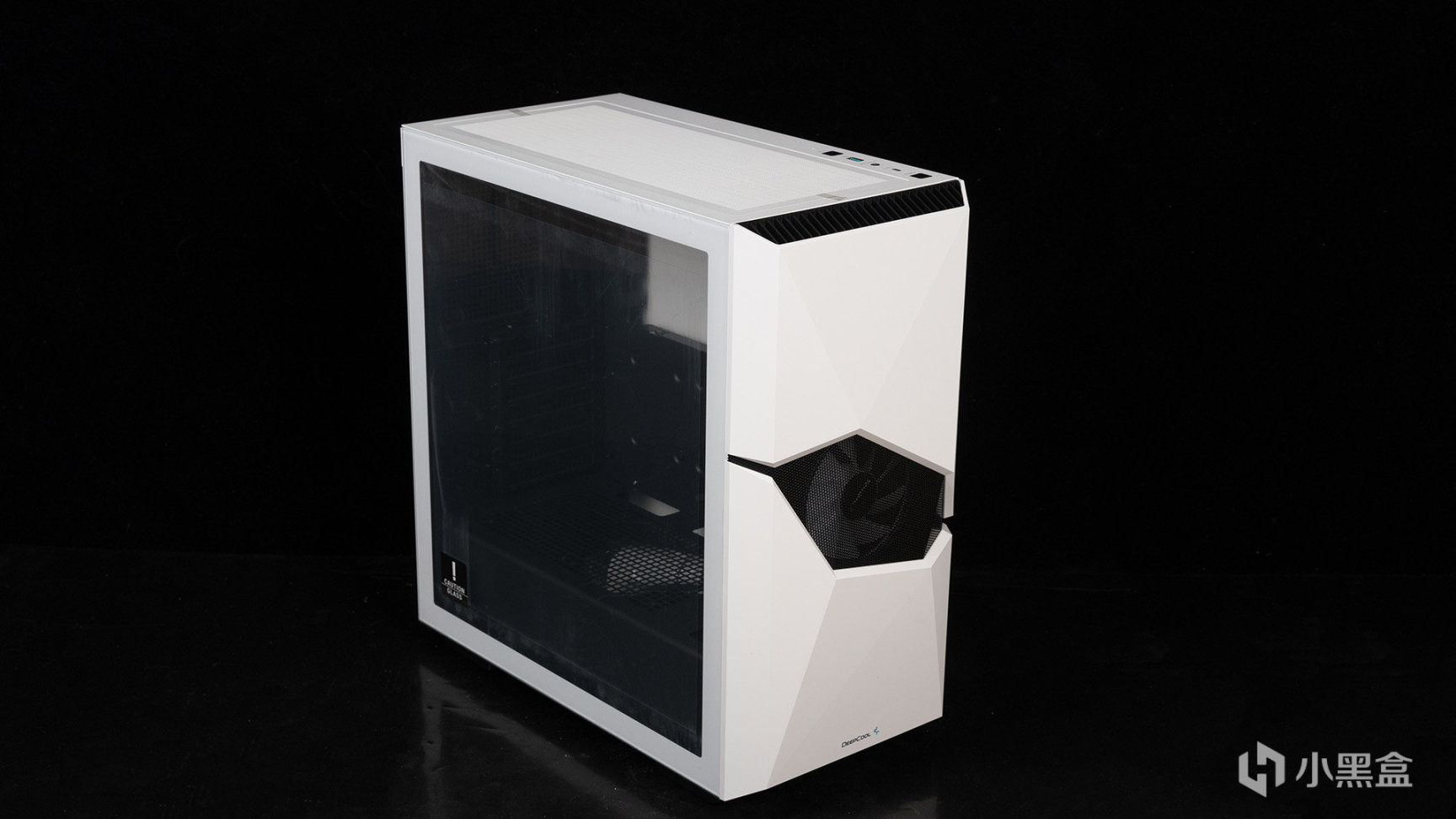最后机箱也是来自九州风神的炫瞳白,前面板比较特别,为了营造立体效果,仅剩下中央区域做成了MESH网,标配一枚120mm,另外I/O部分是顶置设计,标配一个Type-C接口的。