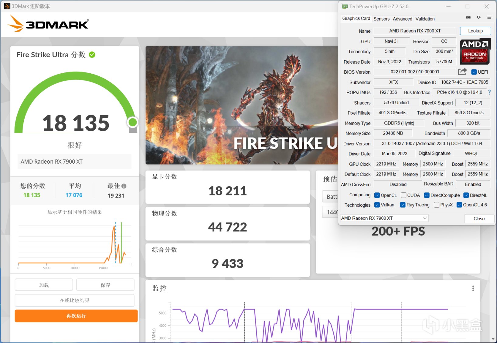 i7-13700K+RX 7900 XT海外版Pro 3DMark Fire Strike Ultra显卡分数为18211