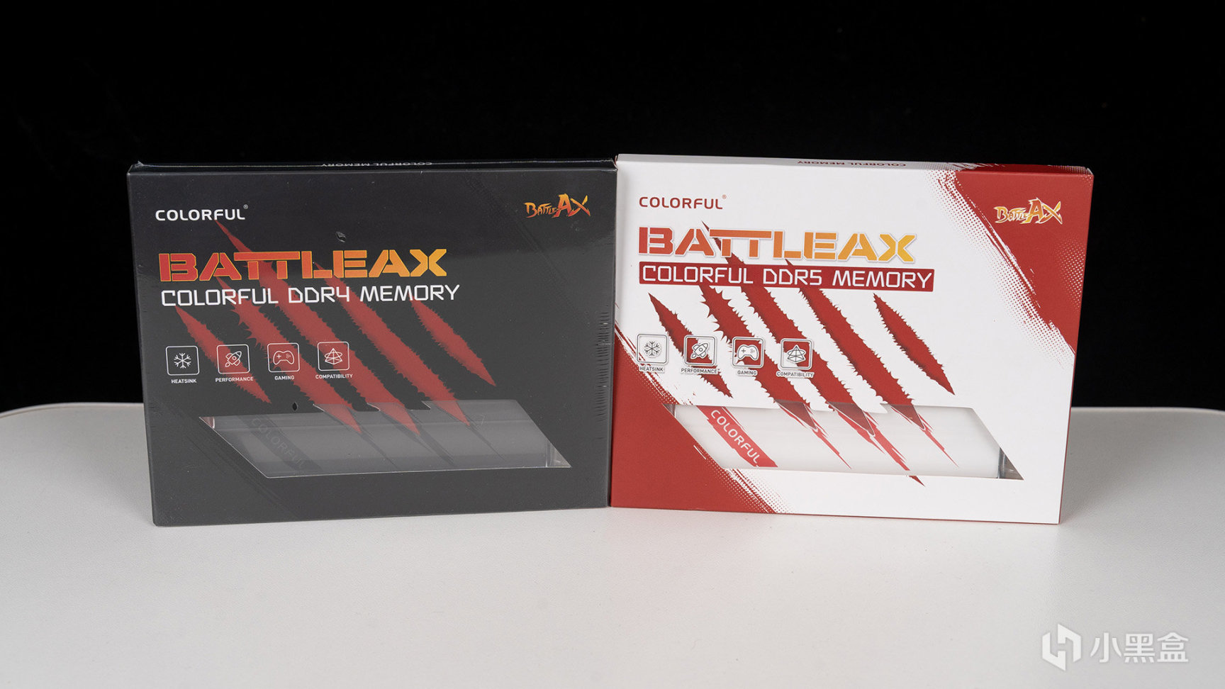 两款主板对应DDR4和DDR5平台,这次准备的是七彩虹最新上市的战斧·赤焰系列内存,包装有透明小窗设计能看到本体,这款产品外观主打撞色处理,个性化直接拉满,不过配色方面DDR4版本只提供红黑,而DDR5版本则是红白。