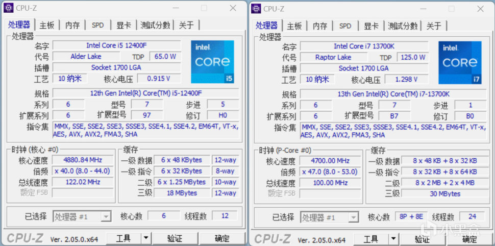 这次装机测试的两颗处理器——i5-12400F和i7-13700K,i5-12400F自然是为非K超频做准备的,而i7-13700K对于某些想省钱的高端用户来说,缩减主板预算选择B系列是个不错的选择,当然个人更推荐i5-13600K,奈何手上并没有只能用i7替代,另外也想探讨一个问题,i5-12400F超外频后,在某些性能上是否能比肩默认频率下的i7-13700K,也就是i7-13700K搭配B660/B760主板的情况。