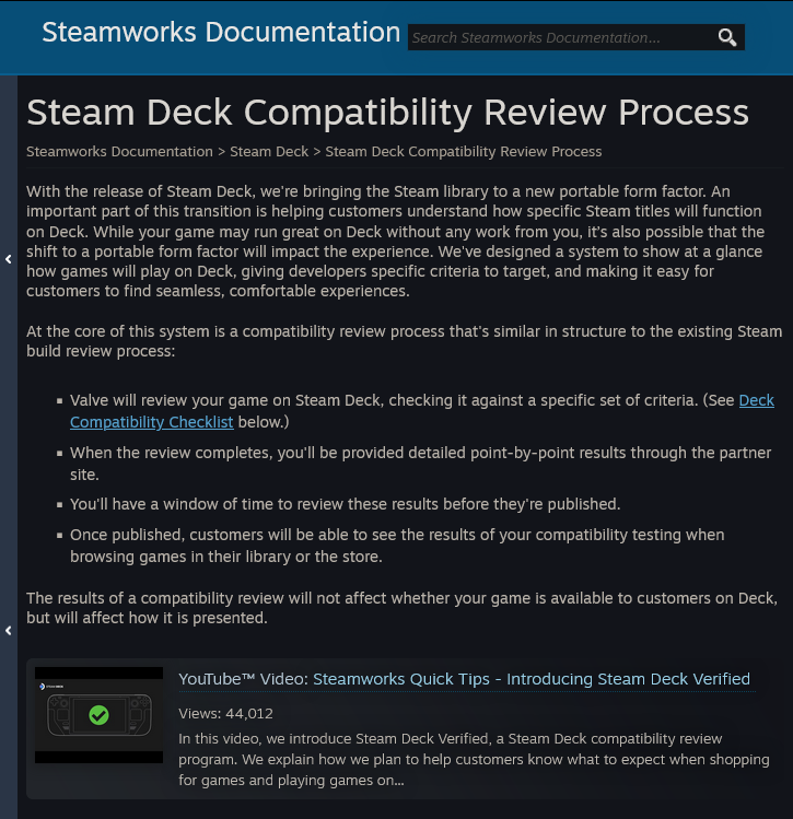 Valve 提供了一个非常详细的清单,帮助开发者在提交游戏进行兼容性认证前获取它们所需要的一切信息。从提交到认证结束的过程一般需要一周左右。