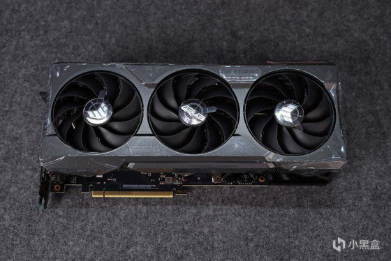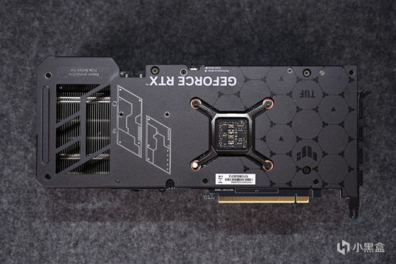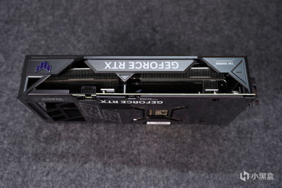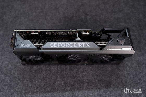 延续这代 TUF 的外观设计,也还是硬朗干练的军事风格,相比其上头的两位哥哥,对应其长度设定,缩小了散热风扇的尺寸,实际散热效果也还不错,完全可以满足到 RTX 4070TI 的发热需求。
