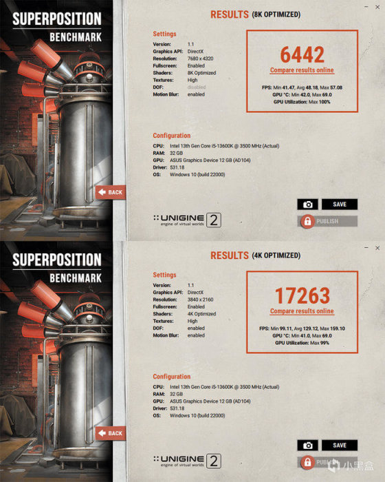 Unigine Superposition 8K 和 4K 测试。