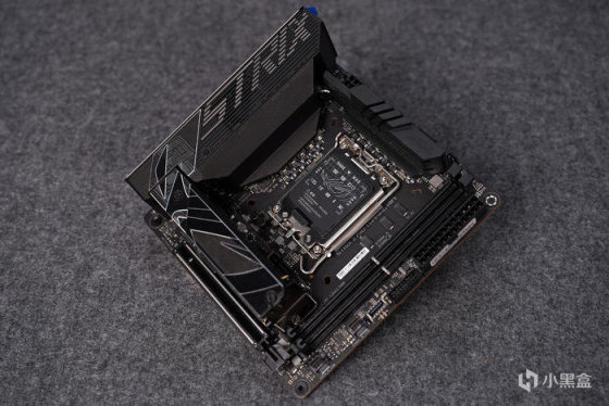 主板本体采用标准 MINI ITX 版型规格,黑灰的配色,外观个人感觉对比上代好看了不少,顶上大大的败家眼及 ROG STRIX 文字元素修饰,也还是叠叠乐的堆料拓展方式,具备很强的辨识度及威严感....