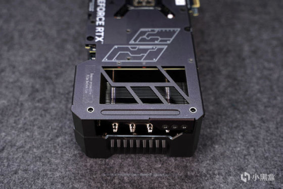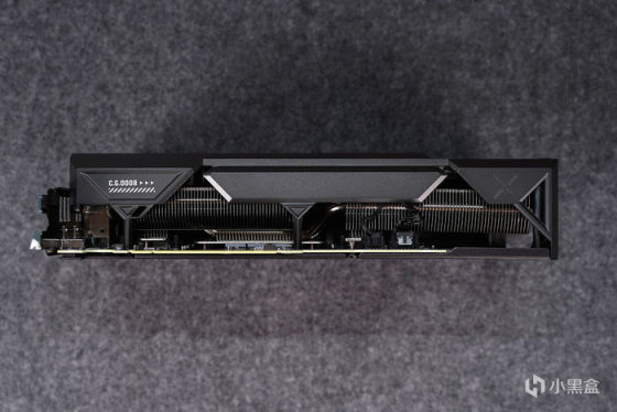 上下均为大面积的鳍片外露,增强散热效率,显卡风扇的插头设计在底部,这样正侧面看着会比较的清爽,整整齐齐满足到强迫症。