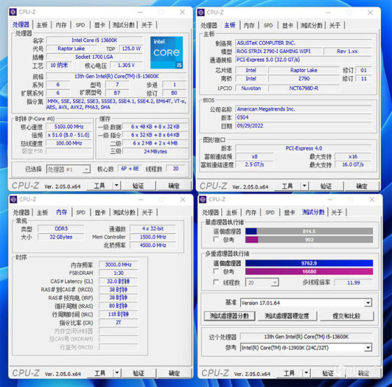CPU-Z 跑分。