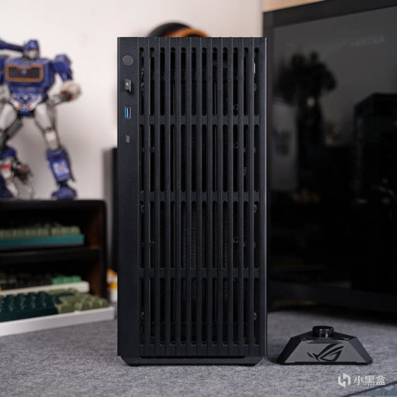 外观设计偏向于干练简约,侧面带有一条 ARGB 装饰灯带,里头的 TUF LOGO 也是带灯的,支持华硕 AURA 神光同步。