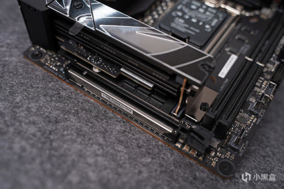 M.2-1 接口位于内存卡槽一侧,这代 Z790-I 舍弃了上代排线搭卡槽的连接方式,拆装会来得更加的快捷方便,且结构也会来得更加的稳固。