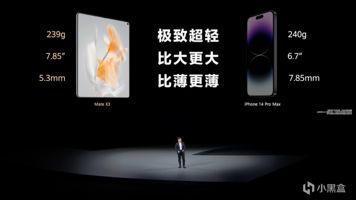 华为Mate X3整机重239g,比iPhone 14 Pro Max还轻。厚度上也仅有5.3mm,华为专门打造了特殊的Type-c接口,使得厚度降低52%!