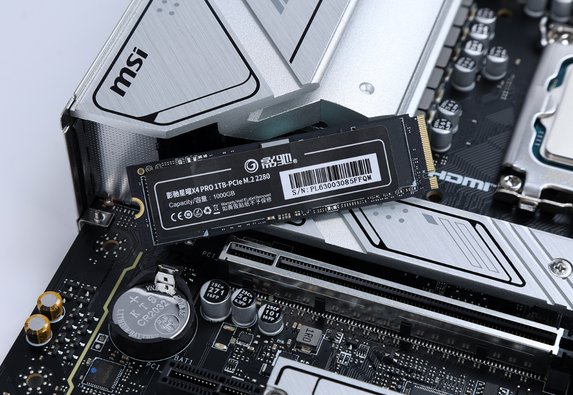 两条M.2 固态硬盘位均支持PCIE 4.0 X4,均带散热装甲。基本白菜价的固态行情,朋友自己选择的是新近上市的影驰星曜X4 Pro 1T M.2固态。