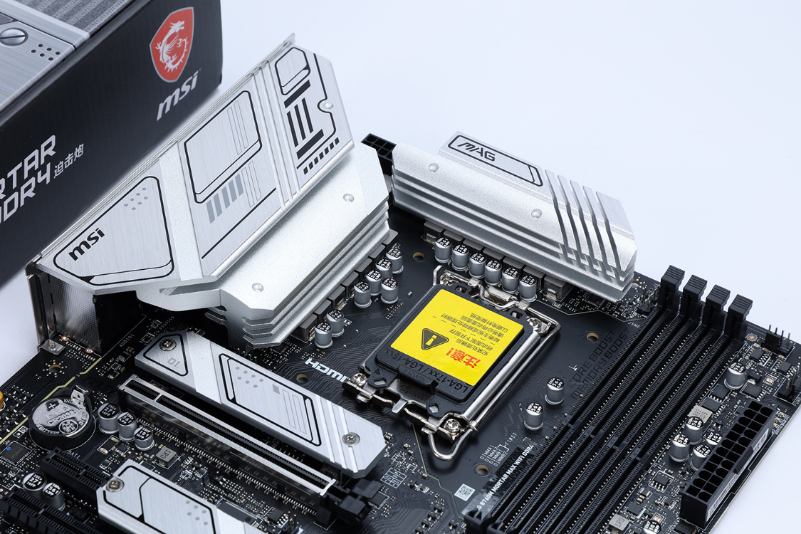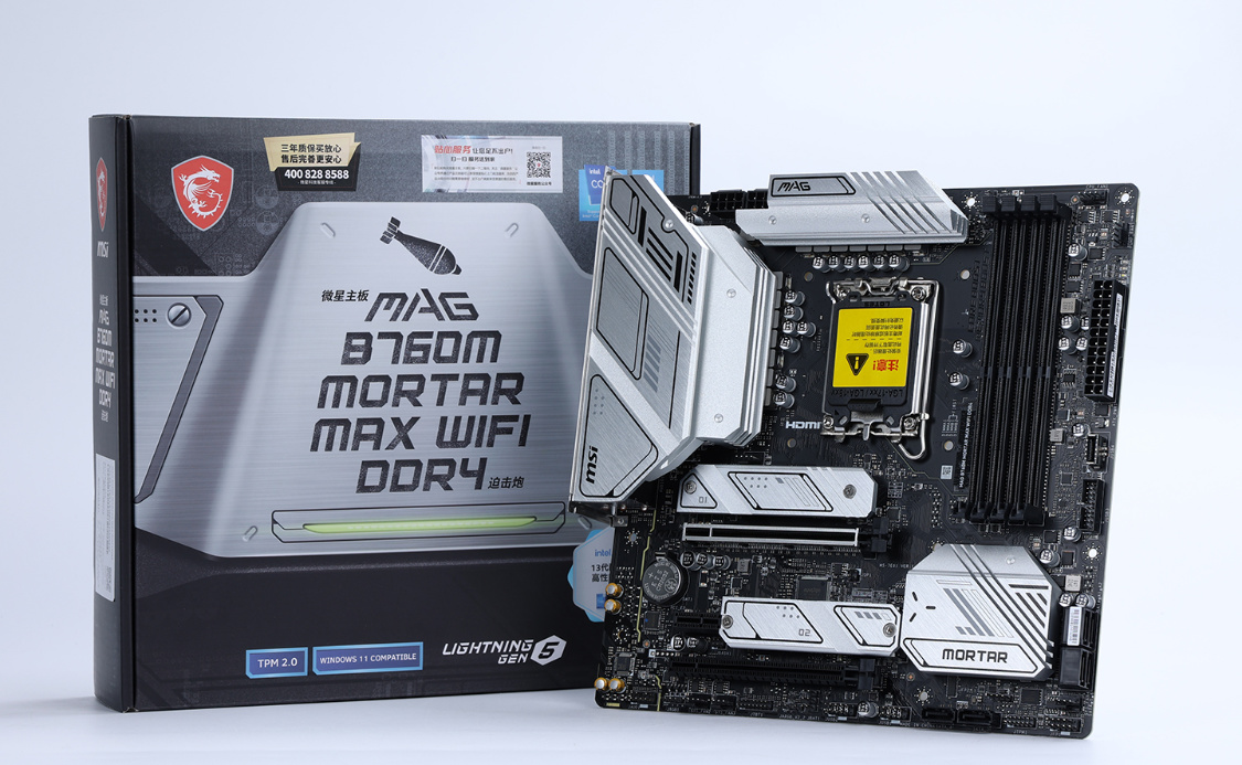对于迫击炮,玩电脑DIY的玩家应该都不会陌生,咱之前也做过拆解测评,不过是非MAX的版本。外观上,黑色PCB板搭配大面积银色金属散热装甲,颜值方面表现没得说。而配置方面,这块主板也同样给力,采用了12+1+1相智能DrMOS供电设计,搭配双8pin的外接CPU供电,能够完美满足13代高阶酷睿处理器需求。
