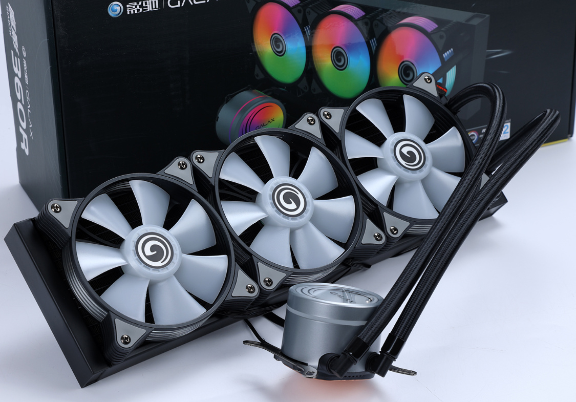 散热方面,朋友坚持颜值即正义,准备的是影驰魔影360R一体式水冷散热。全黑化的水冷本体稍显低调,但跟机箱风格契合度高,再加上ARGB灯效的加持,整体颜值更是没得说。