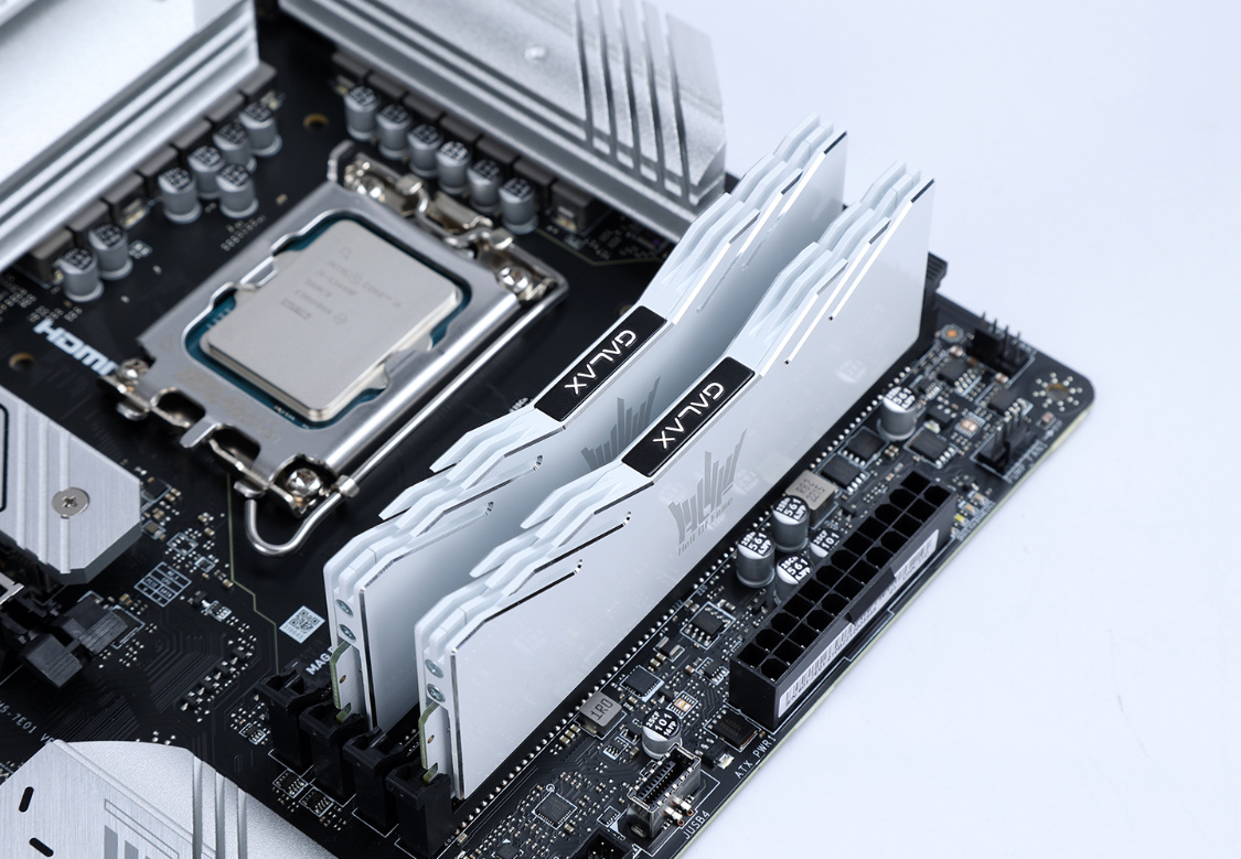 主板配备4条单边卡扣设计DDR4内存插槽,最高支持 128G 内存容量和OC至5333MHz的内存频率。不介意延时的朋友,直接选择的是两根16G的HOF Classic DDR4-4000MHz 内存。