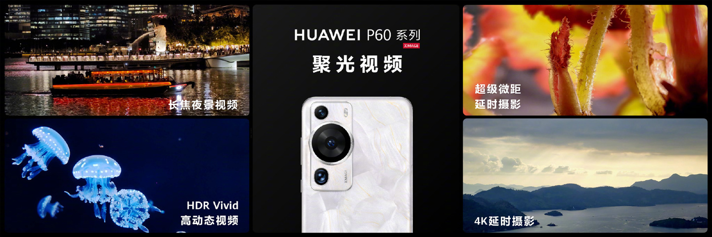 視頻方面,華爲P60系列支持長焦夜景視頻、超級微距延時攝影、HDR Vivid 高動態視頻、4K 延時攝影。