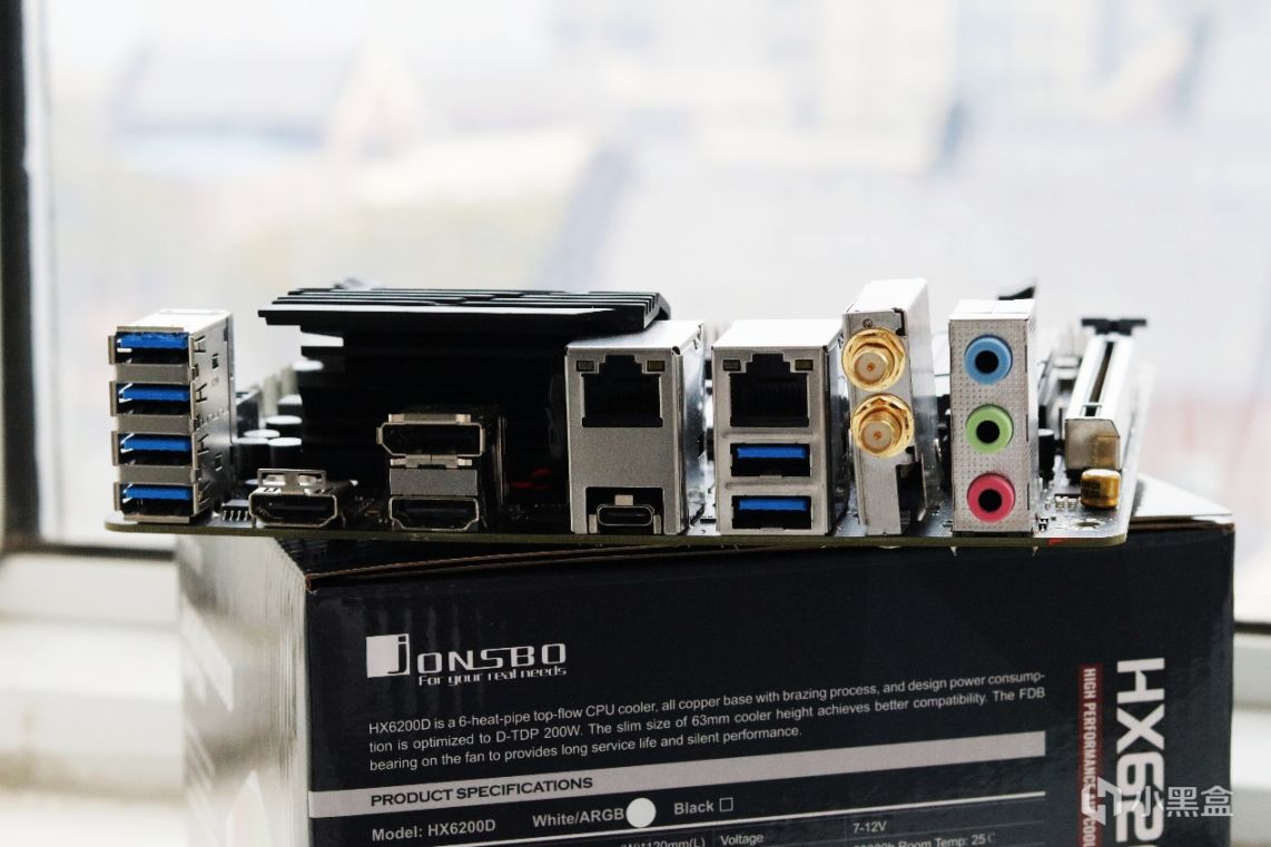 虽然没有原装挡板,无线网卡好像是拆卸过的,一直歪着身子,但价格美丽,后置IO接口给的很充足,六个USB Type-A、一个USB Type-C、两个HDMI和一个DP显示输出接口, 更有两个千兆有线网卡I219V+I211(I219V后来被我改成I219LM),可以组建网络堆叠。