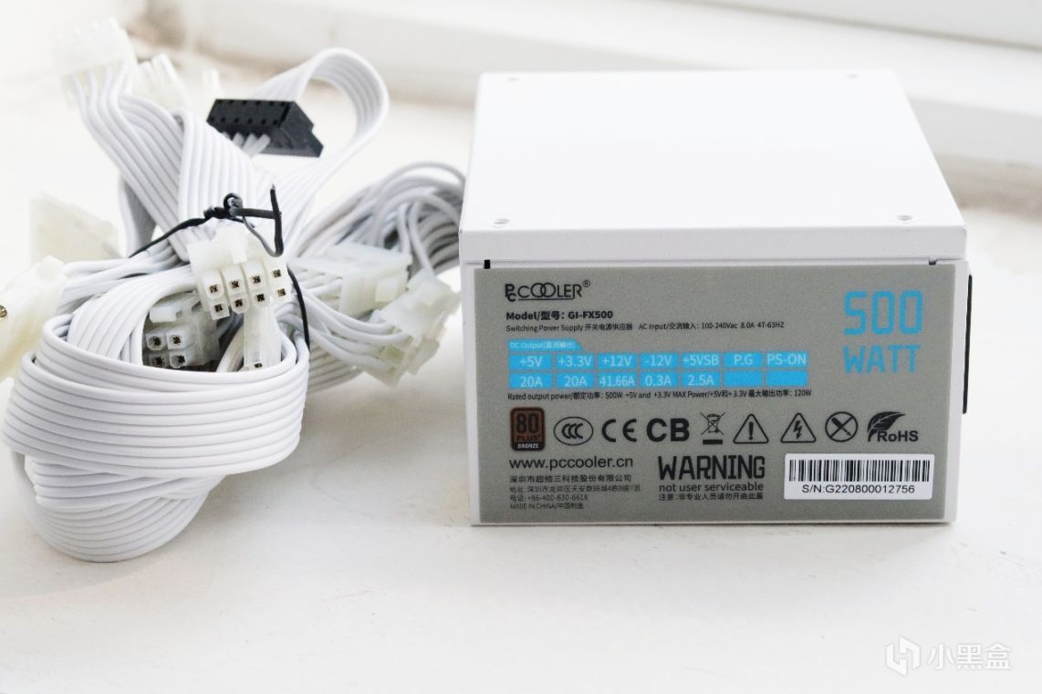电源用的是超频三的钒星GI-FX500白 额定500W SFX电源,尺寸为125×100×60mm,支持温控风扇,5年质保,功耗负载方面甚至可以满足3060TI级别的迷你小钢炮平台供电需求。