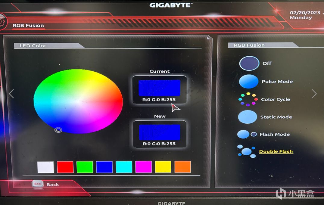 关闭、常亮、七彩循环、呼吸、节奏和双闪,总共六种灯效,灯效不多,最后设置了七彩循环,芝奇皇家戟可能要系统中适配,所以没能同步成功。
