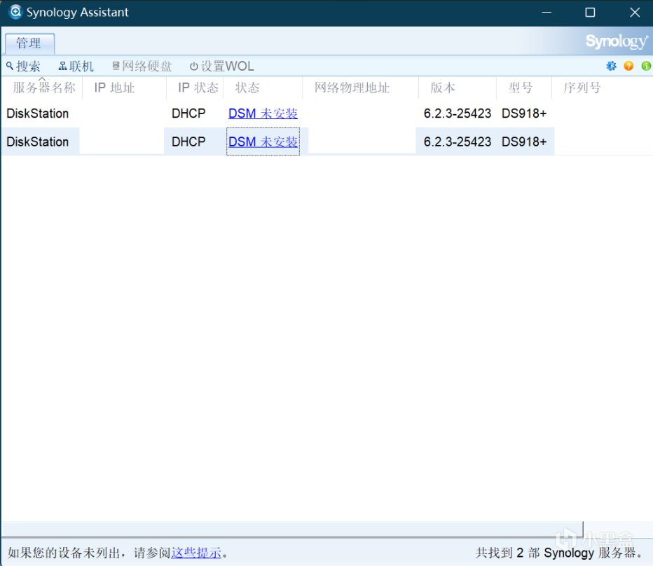 新装机状态都是 DSM未安装,需要响应一段时间才能查找到。