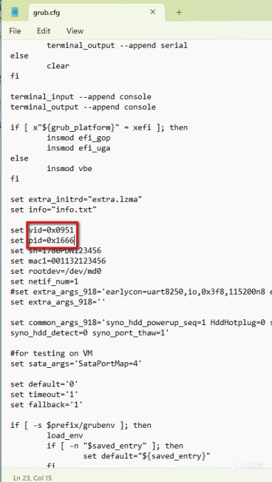 然后记事本打开,将VID和PID修改为U盘的参数值,这里按照第一步举例的参数值:05E3和0749,就是vid=0x05E3 pid=0x0749。
