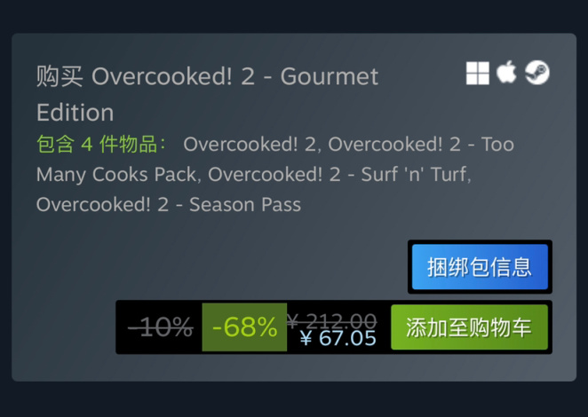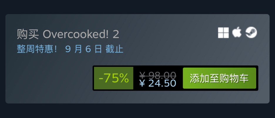 多人在线合作游戏《胡闹厨房2》平史低24.5元