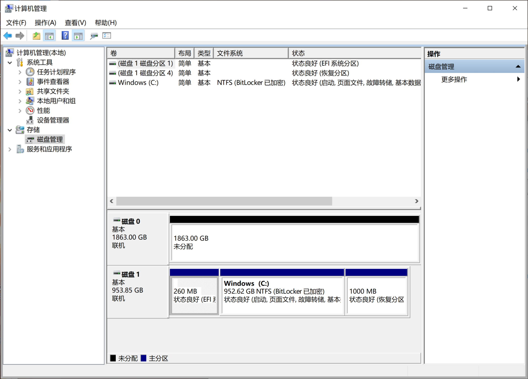 1.右键我的电脑-管理-存储-磁盘管理,这里就可以看到硬盘的大小,有没有分区,全新的磁盘应该是未分配状态的,在这里也可以进行硬盘的分区,自己硬盘的第一次应该狠狠把握在自己手中。