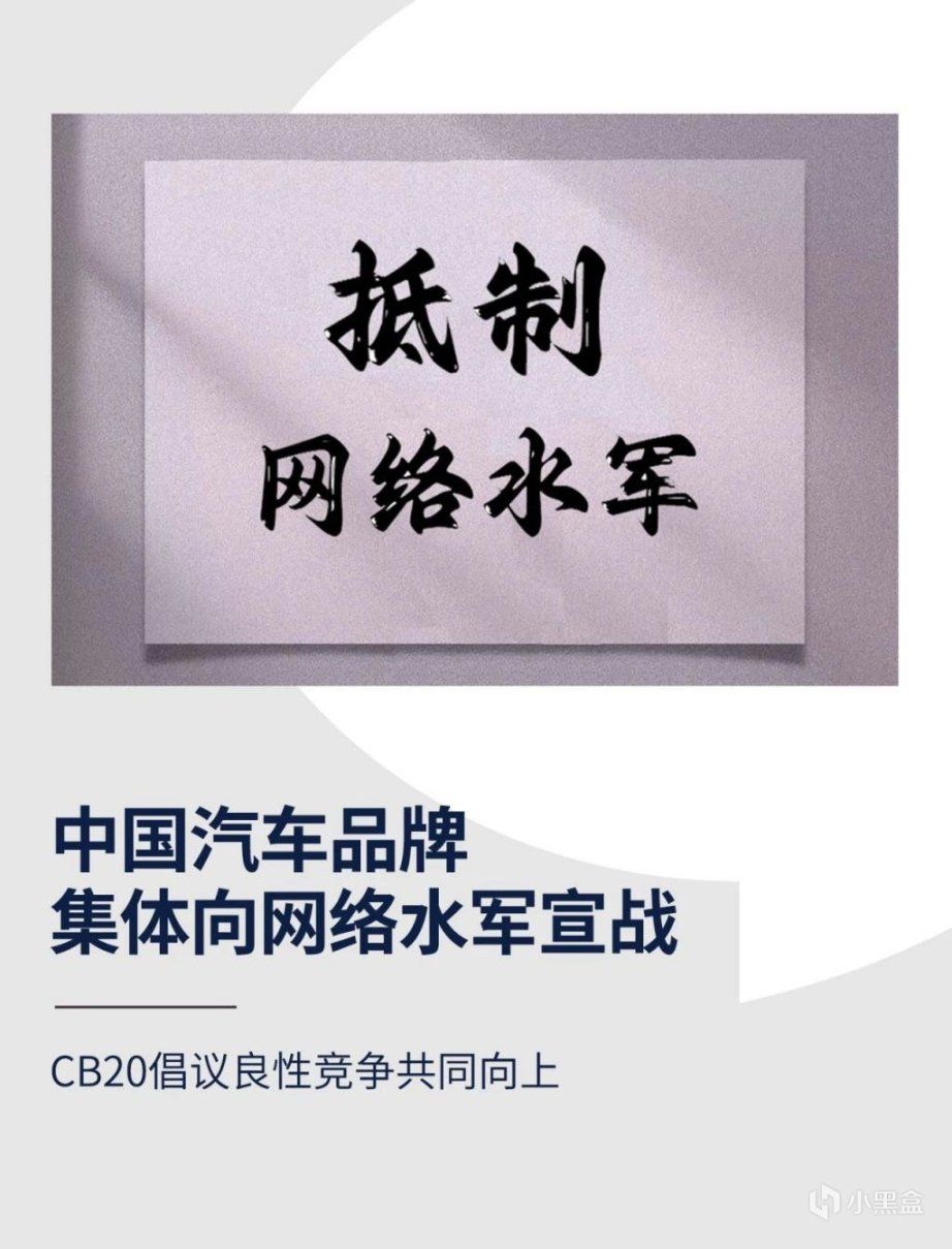 使用水軍攻擊對手,既抬高不了自己,也損害行業正常競合環境。針對汽車行業網絡水軍亂象,中國汽車企業首席品牌官聯席會(CB20)攜手成員單位聯合發出倡議:抵制網絡水軍,還汽車行業一片清朗。