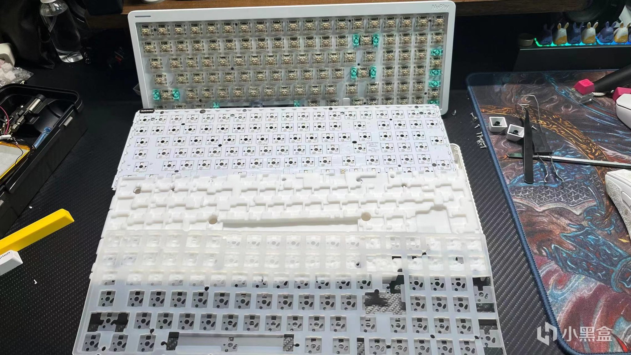 大鍵方面,這次的96的大鍵沒有之前的那種有空鍵程或者有鋼絲音的存在,並且衛星軸地方油很多很多,這裏是很不錯的,省去了萌新調教大鍵的時間