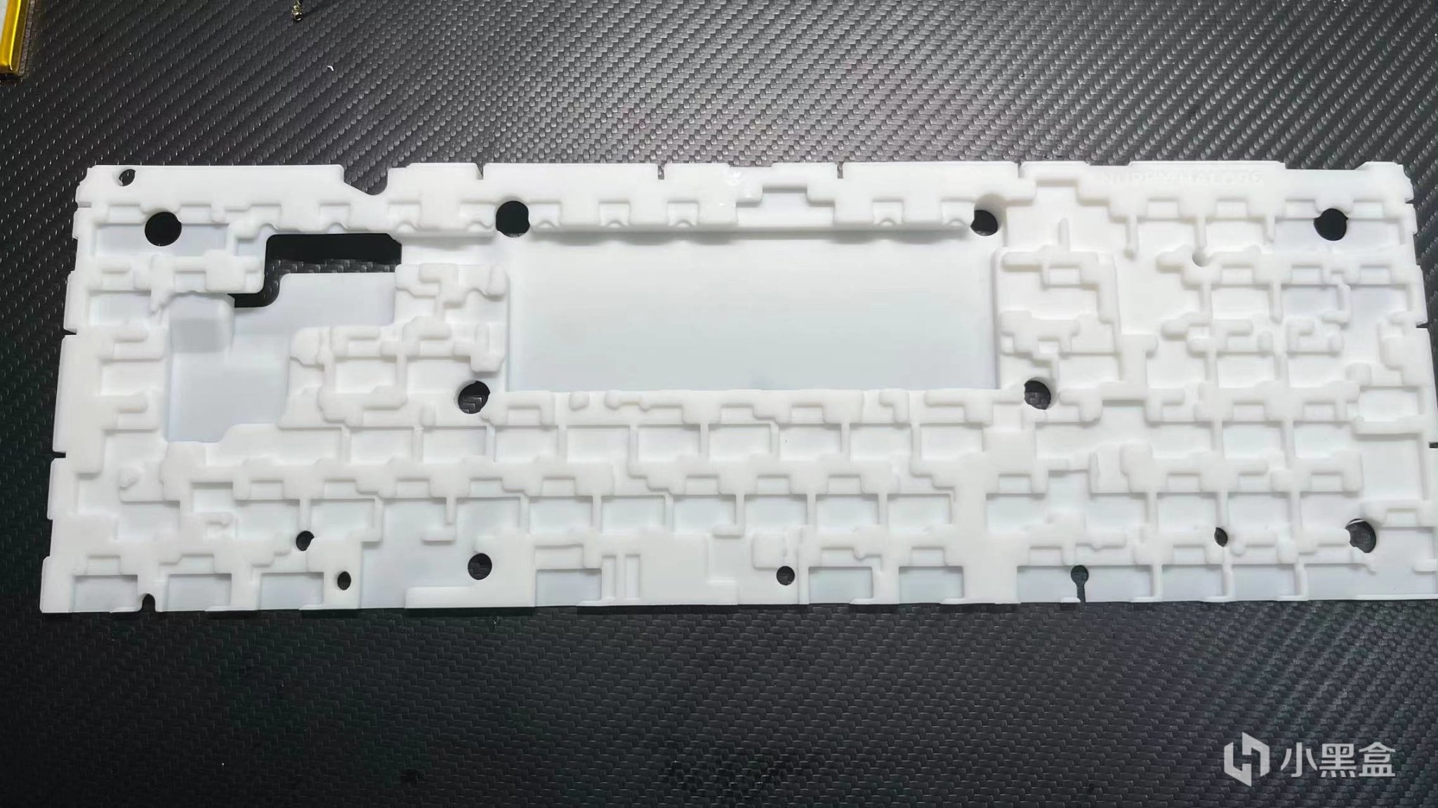 底部採用了硅膠開模的底棉,他這個做的不錯的,就是因爲他這個甚至給你準備了軸座棉的空間,這讓鍵盤底部得空空間幾乎沒有,極大的減小了鍵盤的空腔音。