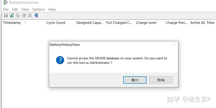 打開之後,這個軟件需要訪問系統內的 SRUDB 數據庫,所以會有一個彈窗,問你是否想要用 Administrator 系統管理員的權限來運行這個程序。