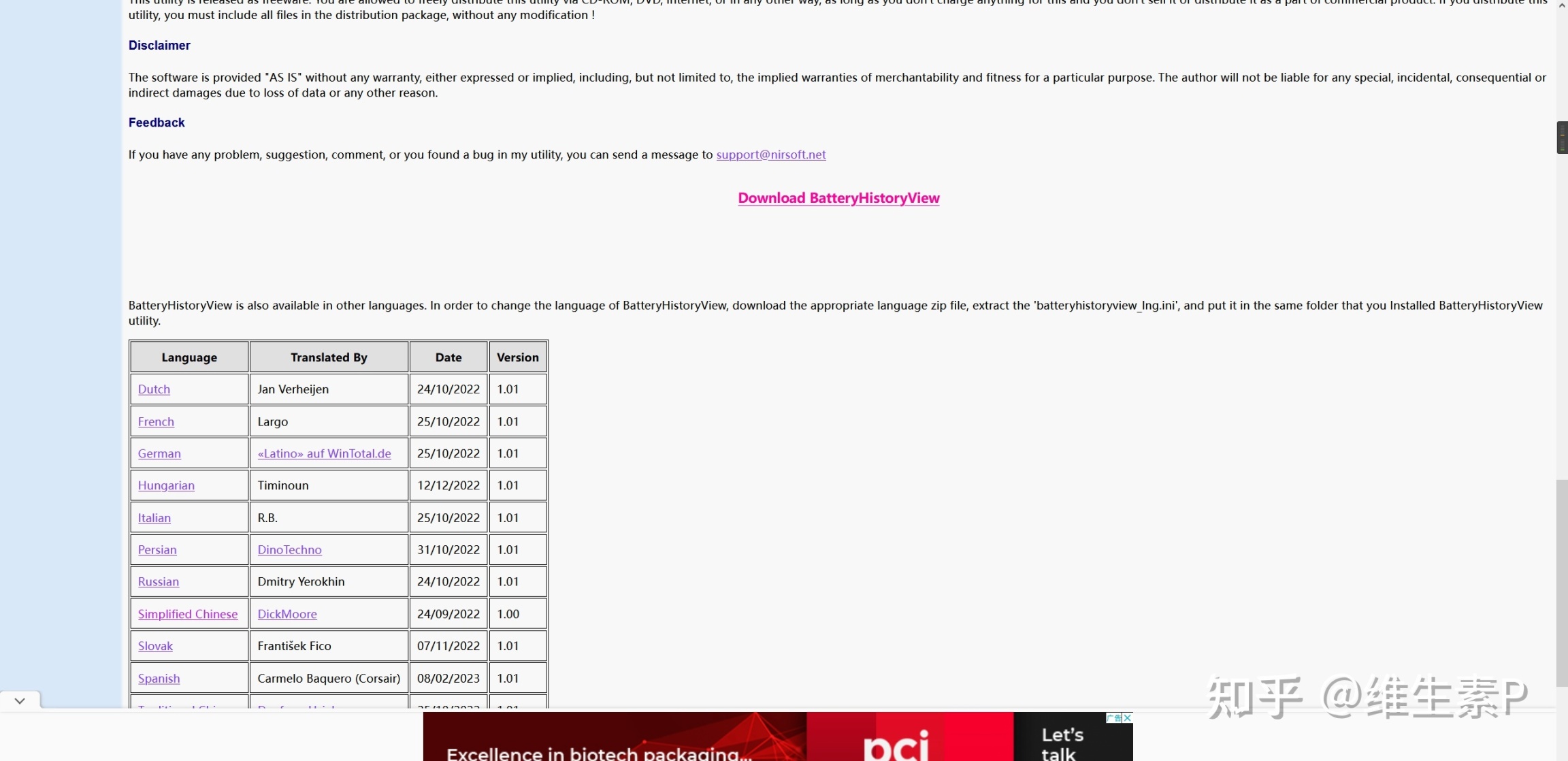 在網頁接近最下面的位置,找到一個居中的英文超鏈接“Download BatteryHistoryView ”