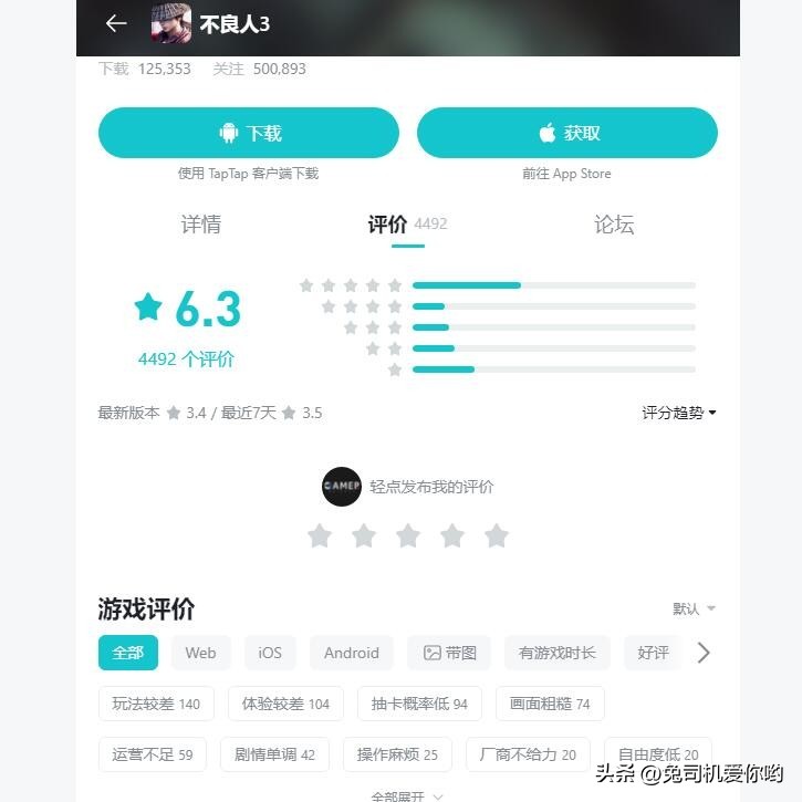 以现阶段的游戏体验来看,《不良人3手游》比起市面上其他的同类型游戏的培养成本有过之而无不及。在开启限时侠客招募之后,氪金成本也直线上升。总而言之,《不良人3手游》在磁场君看来,就是又一款为了蹭《不良人》IP热度而赶工出来的圈钱作品。6年的时间,云畅仅仅在美术方面进行了提升。而在核心的游戏性方面,基本上是在原地踏步,即没有创新盲目从众的层面之上。对于这种如此不重视玩家的表现,即便是《不良人》系列的死忠粉丝,也不会无脑买账。Taptap平台上《不良人3手游》近期评分已经直接逼近4分,而且还有继续下降的趋势。在IOS渠道的下载量预估和收入预估方面,《不良人3》手游也呈现出直线下降的趋势,玩家的反馈说明了一切。