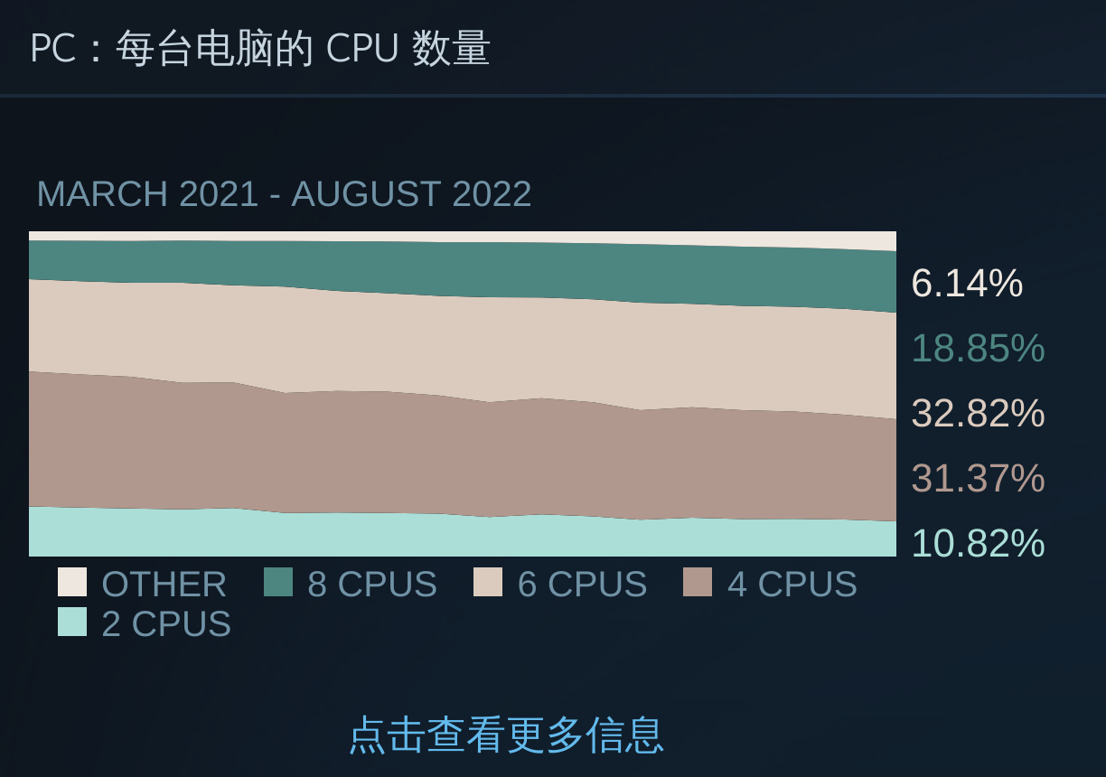 今日Steam官方公布了2022年8月Steam硬件和软件调查报告,从显卡、处理器、操作系统等各品牌和型号的占比展示了当前Steam玩家的整体情况,以下为本月报告详情。