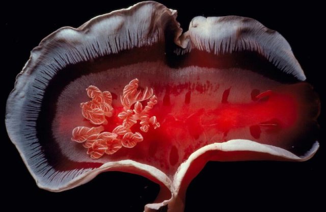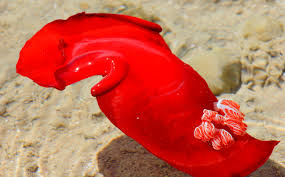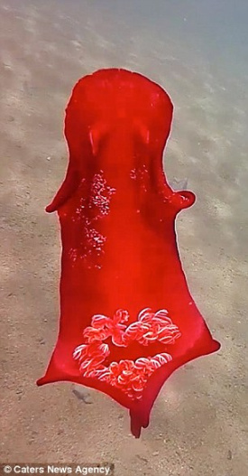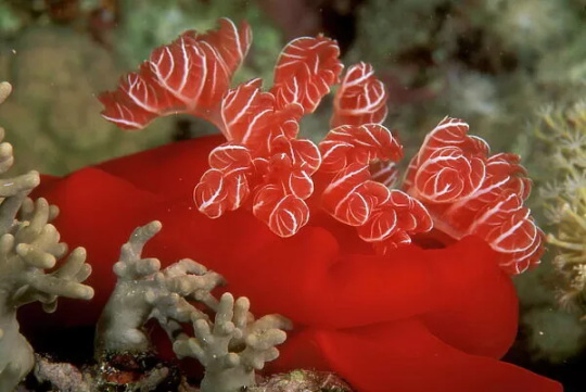 海蛞蝓生有可再生的鲜红乳突,如果受到“敌袭”,这些乳突就会随处摆动,鱼类便会去咬。