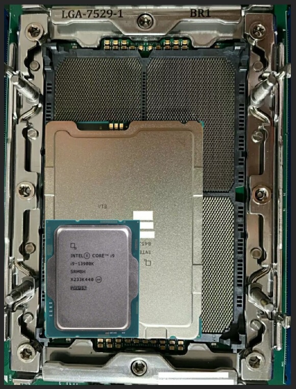 將一顆LGA4677接口的四代至強放在裏邊,還空出一大片,LGA1700接口的i9-13900K比之就更是小弟中的小弟了,目測一個插座裏能放六顆i9-13900K。