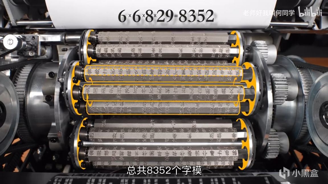 何同學打字機之所以能夠打9萬字,最核心的是三級滾輪結構,一個大滾輪上有6箇中滾輪,每個中滾輪上有6個小滾輪,每個小滾輪有8個面,每個面裝有20個字模(明快打字機爲29個字模),這樣理論上打字機合計可以輸出6*6*8*29=8352個字符。