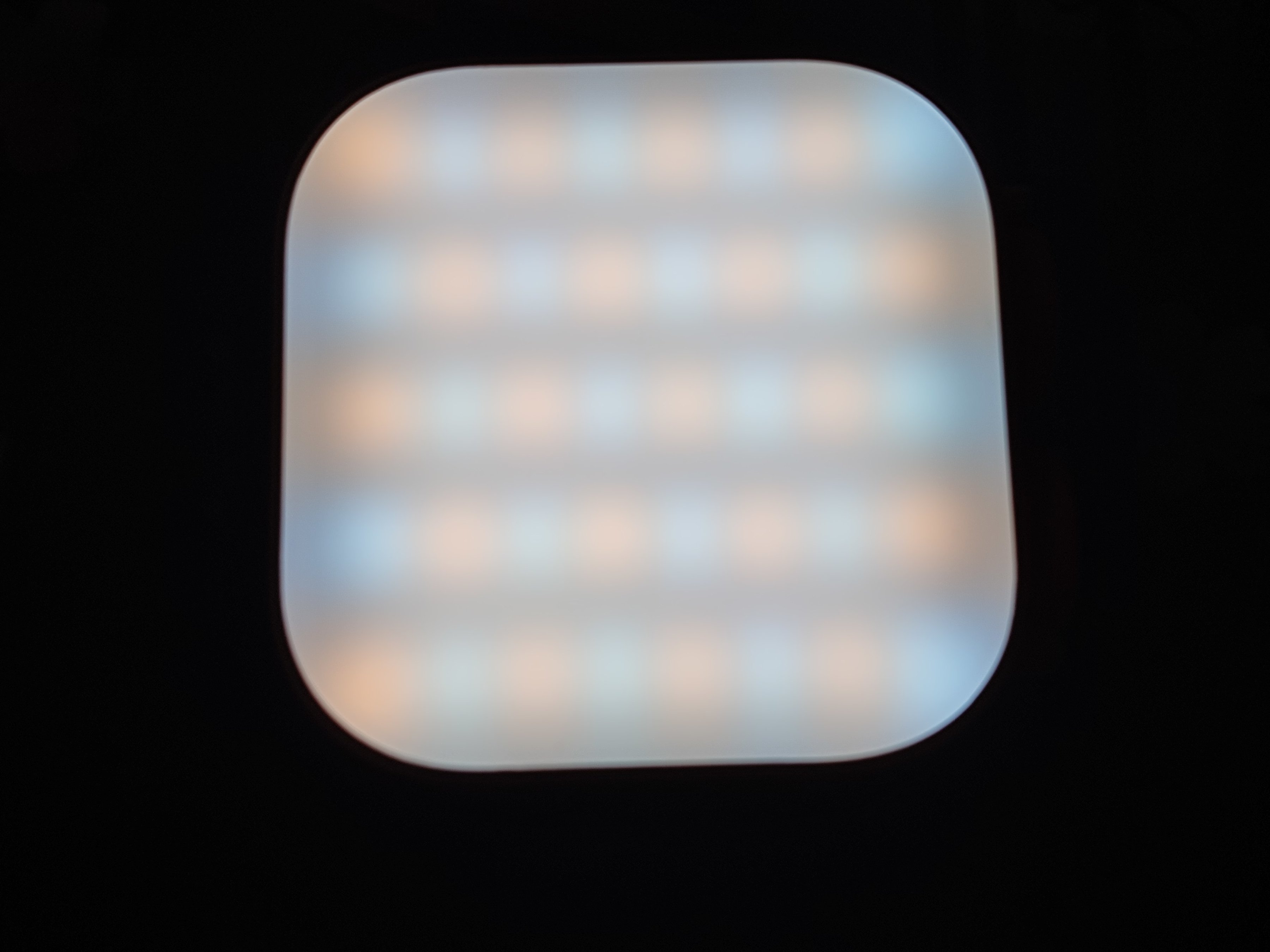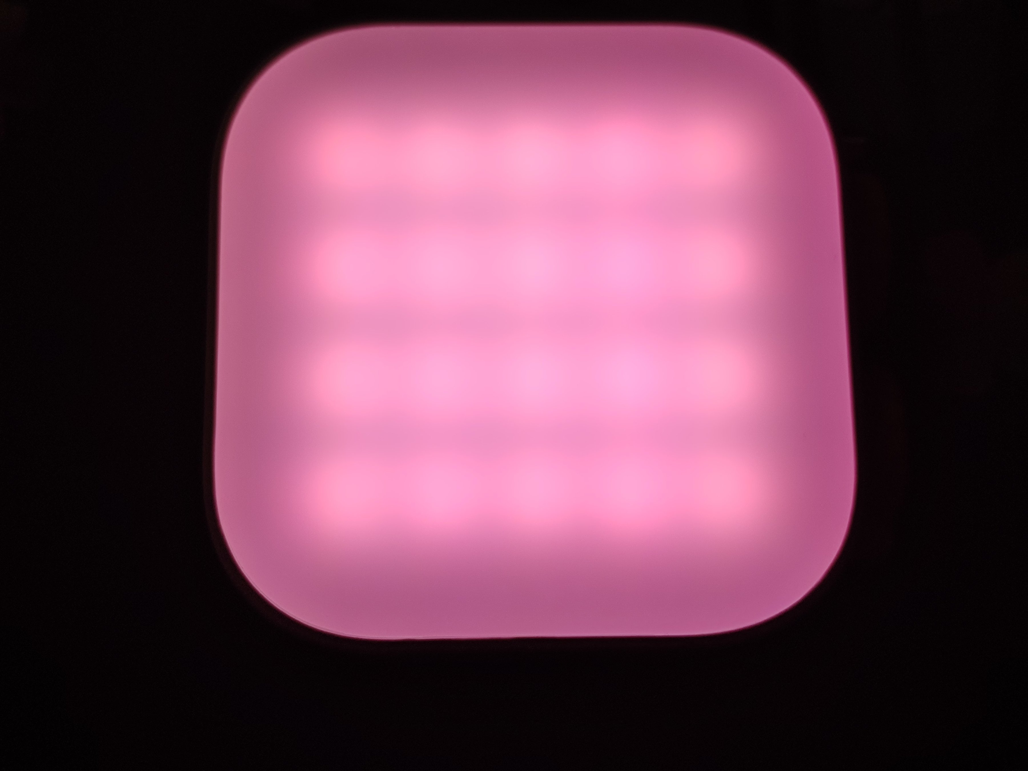 來到背部,在不亮的時候可能看不出來什麼,而打開燈光之後就可以看到其中藏着許多燈珠,一共有60顆,其中有20顆RGB燈珠,20顆正白燈珠,以及20顆暖白燈珠,會根據不同模式來選擇亮或不亮。