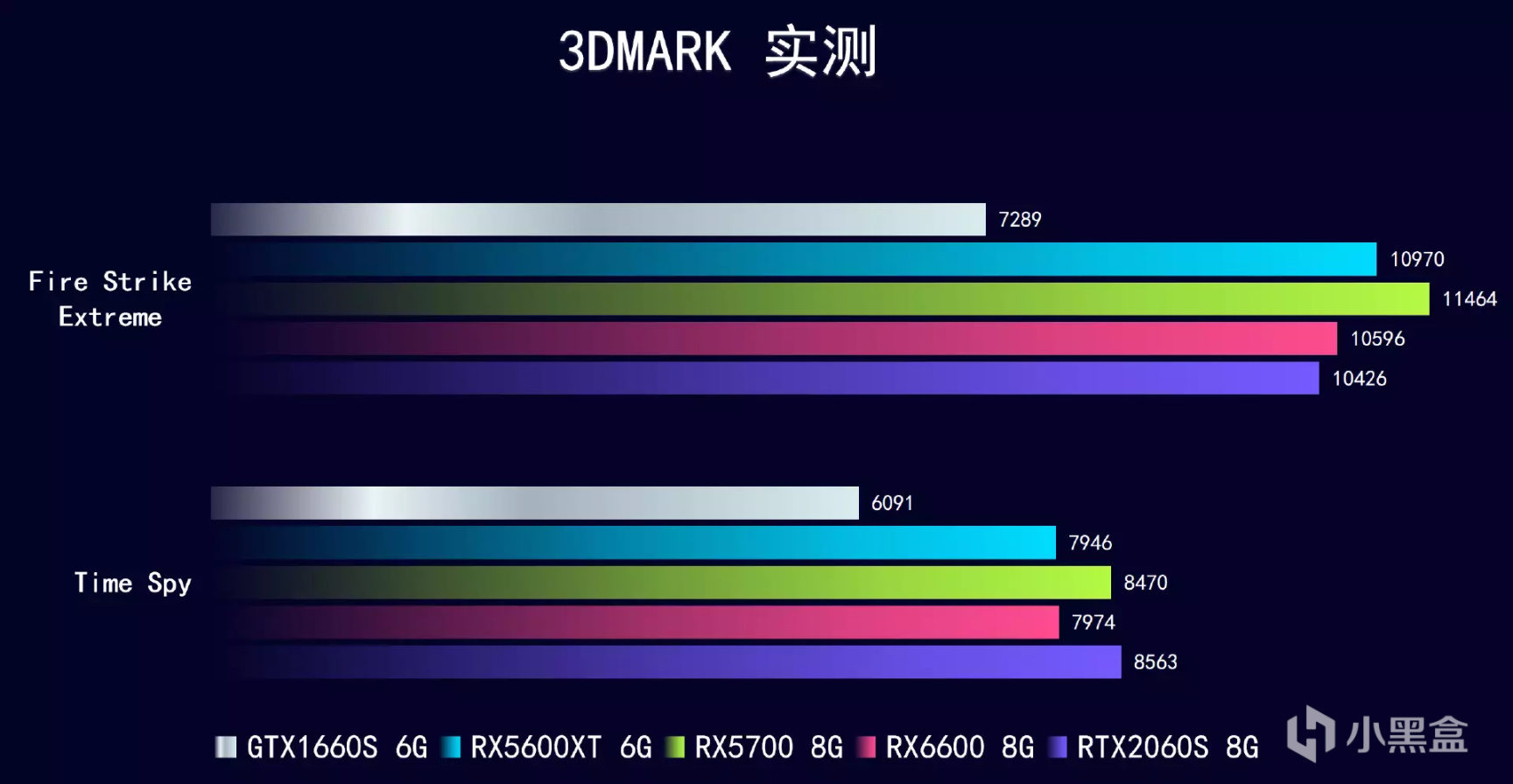 接下來先跑個“3D大作”,3DMARK,毫無疑問墊底的是1660 Super,FSE分數比2060Super 低43%,TS分數比5600XT低30%