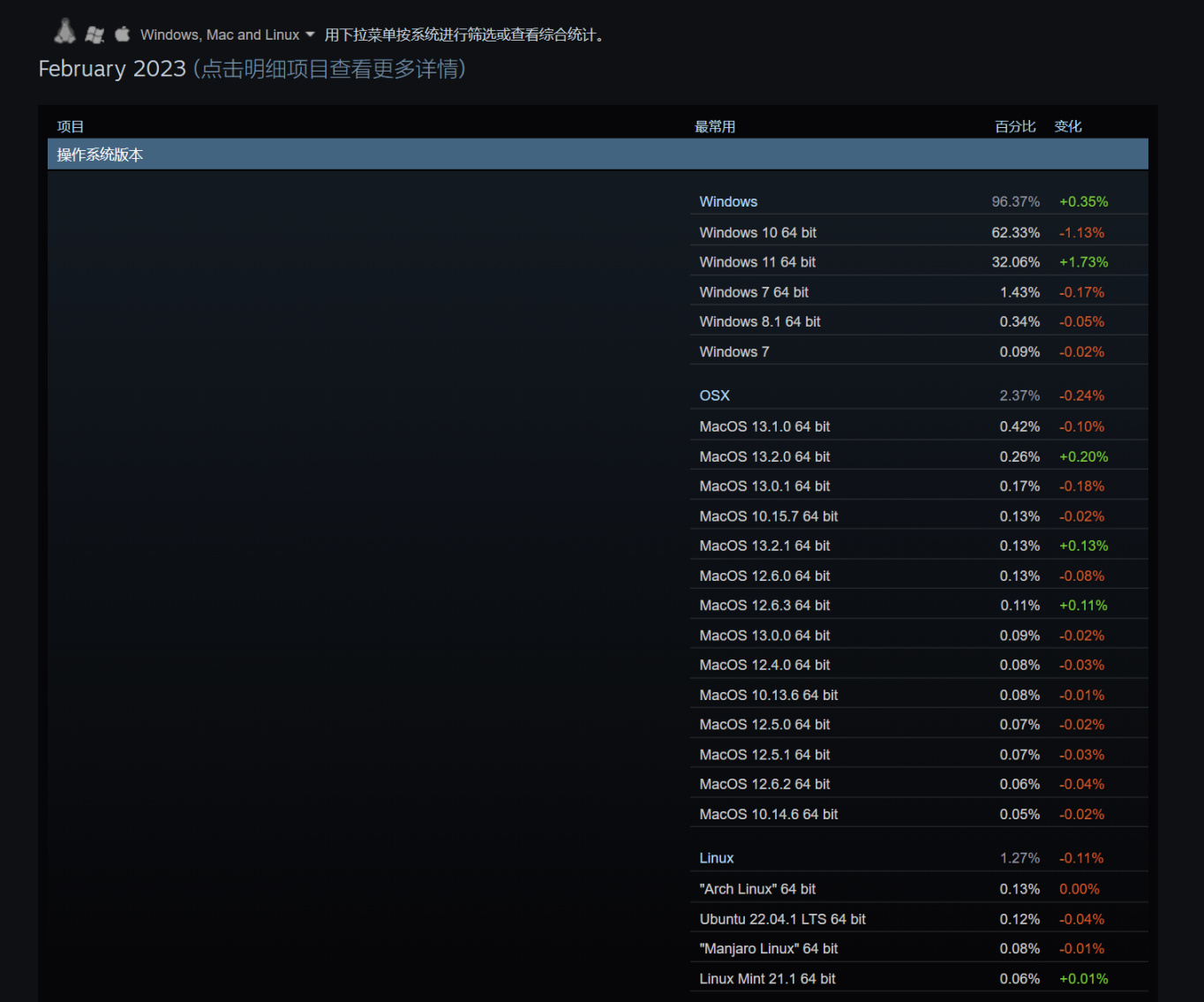 不過好像在官方統計中,現在win7用戶的佔比累積加起來只有2%了,大家現在用的是什麼操作系統在玩Steam呢?