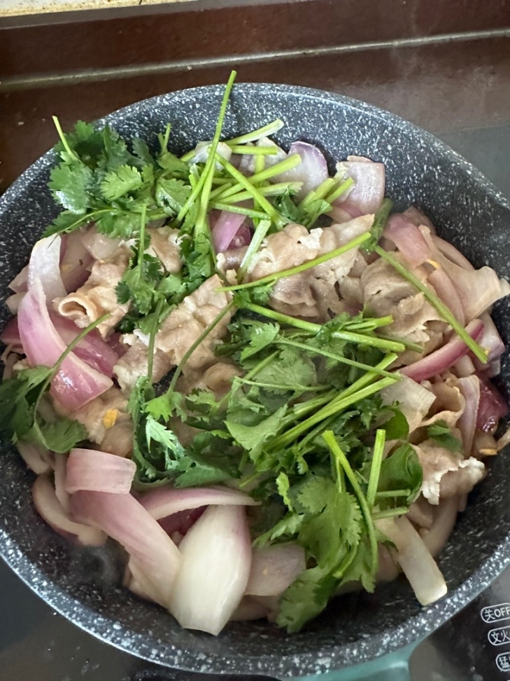 準備食材:肥牛,洋蔥(香菜我自己加的不喫就別加)