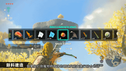 另外還有一些奇妙的附魔玩法。比如附魔keese眼球,箭矢就具備了自動追蹤的能力,媽媽再也不用擔心我打中鳥了。